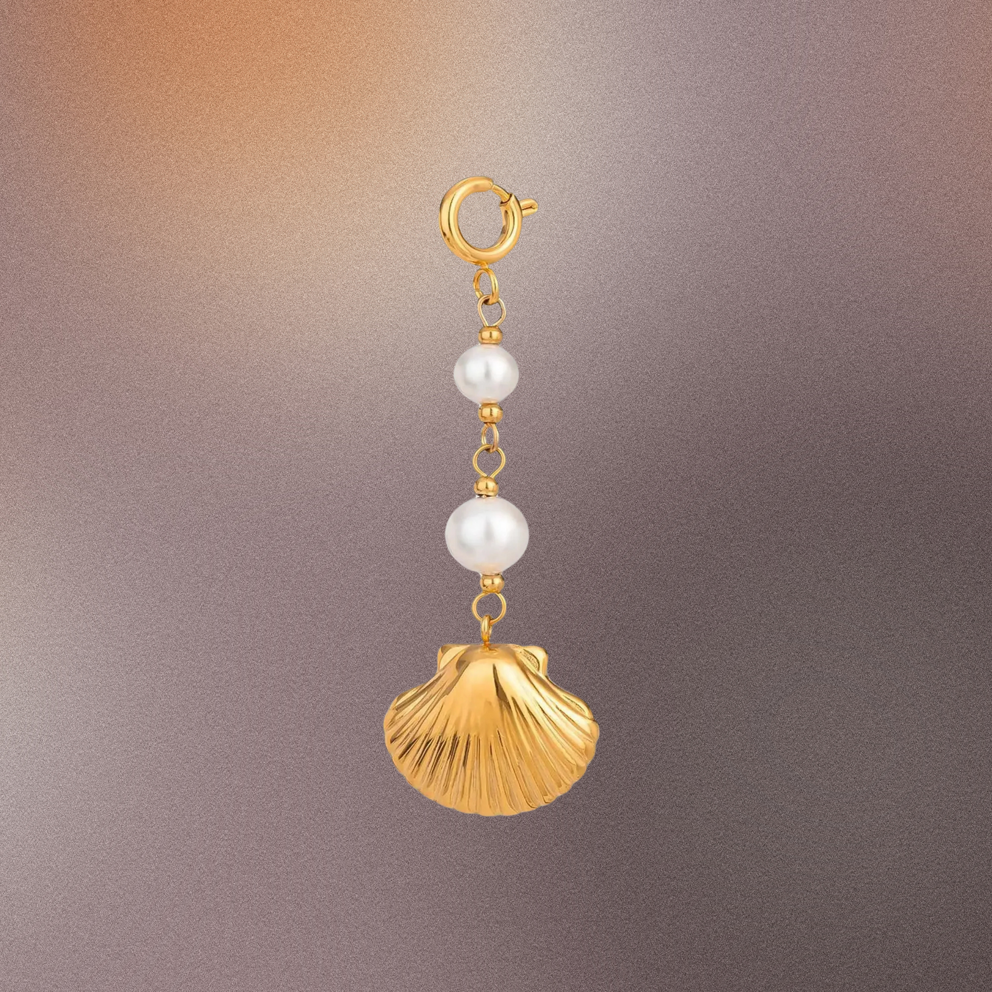 The SHELLY charm boasts a pair of delicate pearls and a lavish gold scallop shell - the epitome of oceanic opulence.